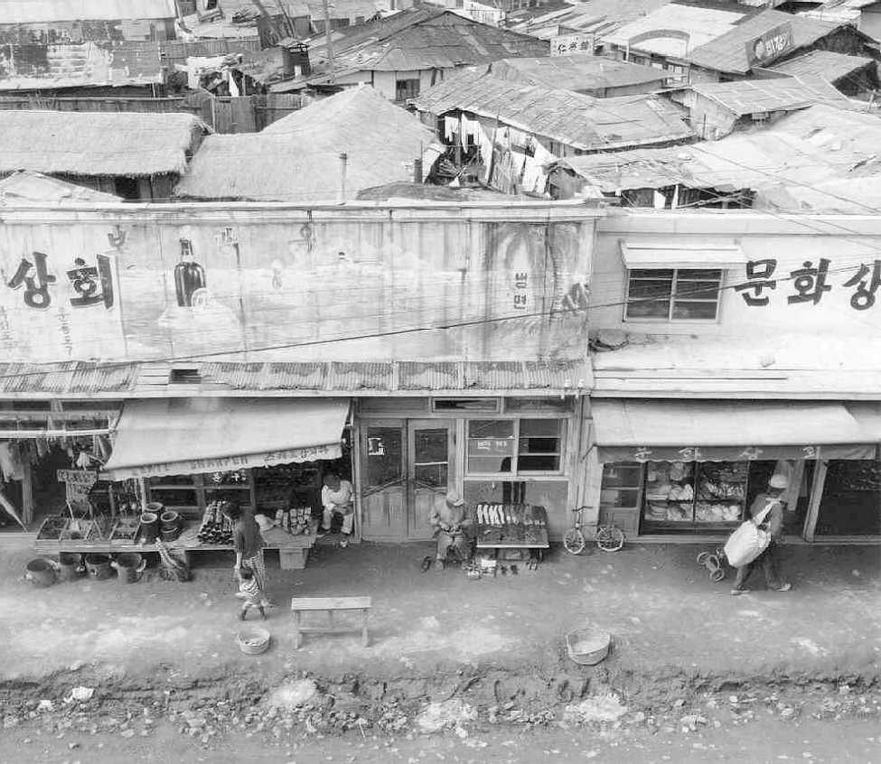 The photo above is a shot of main street Yongjukol, circa spring 1962. It shows the north side of the street and in it you can see what the rooftops of the houses behind the street buildings look like. I think this picture was taken from the window of the "Hi Tabang," or "Lucky Tea House" in English.